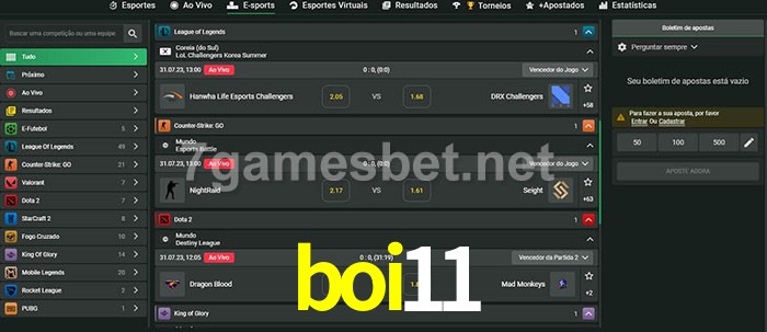 O boi11 oferece uma grande seleção de opções de apostas em e-sports com probabilidades competitivas